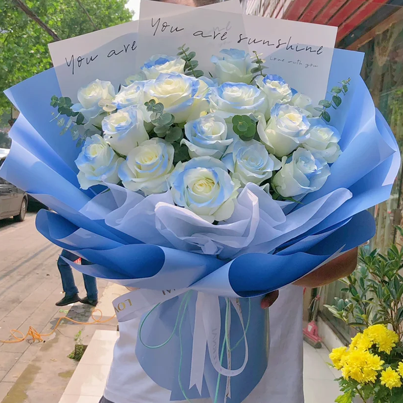 【蓝天白云】19枝碎冰蓝玫瑰,搭配蓝色满天星(珍贵稀少花材,请提前预订或咨询花艺师)