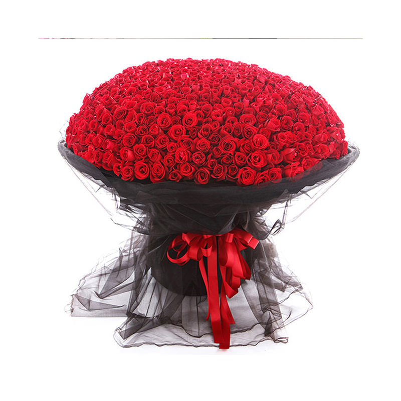 花材: 精选520枝卡罗拉红玫瑰,球形立体包扎。