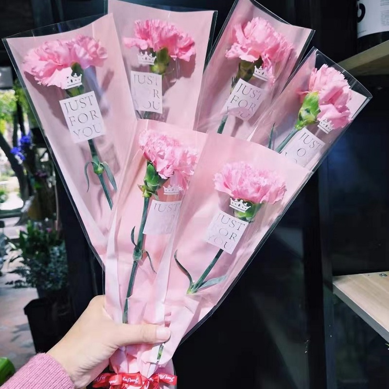 花材: 1支粉色康乃馨,透明玻璃纸,精美包装。请数量选择8及以上